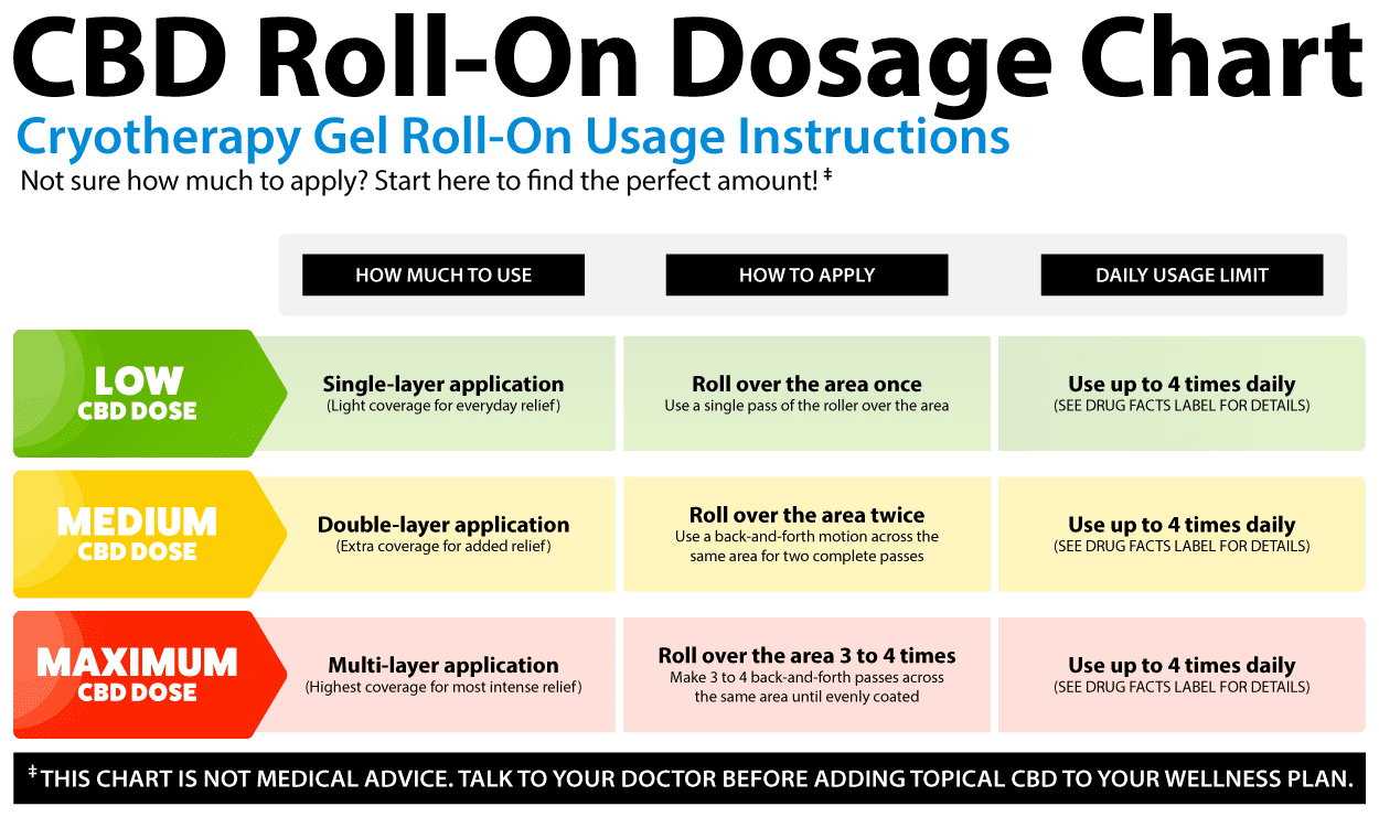 Use the CBD Roll-On Dosage Chart below to find the application tier that works best for you: