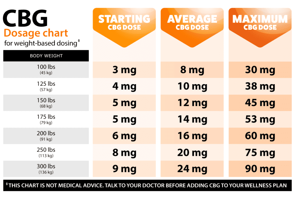 Talk to your doctor if you plan to take more than the maximum recommended CBG dose in this chart.